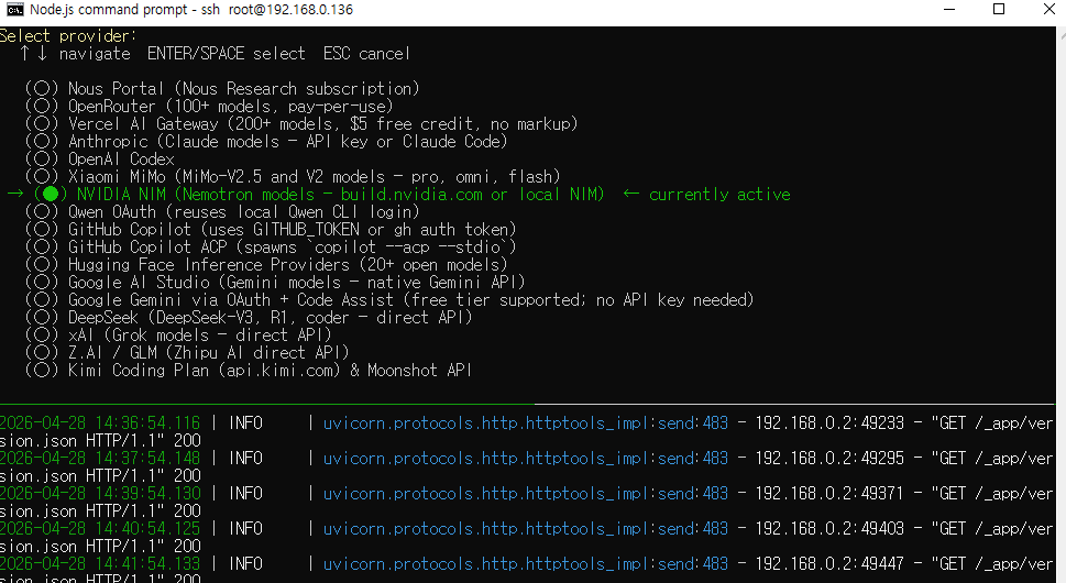 선택하고 나면 api key 를 입력하는 란이 나오는 데 거기에 nvapi- 로 시작하는 api key 붙여넣으면 됩니다.