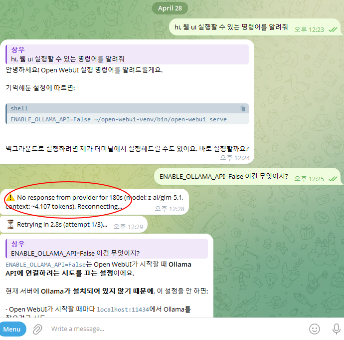 사용해 보니 역시 무료라서 그런지 No response from provider for 180s 라는