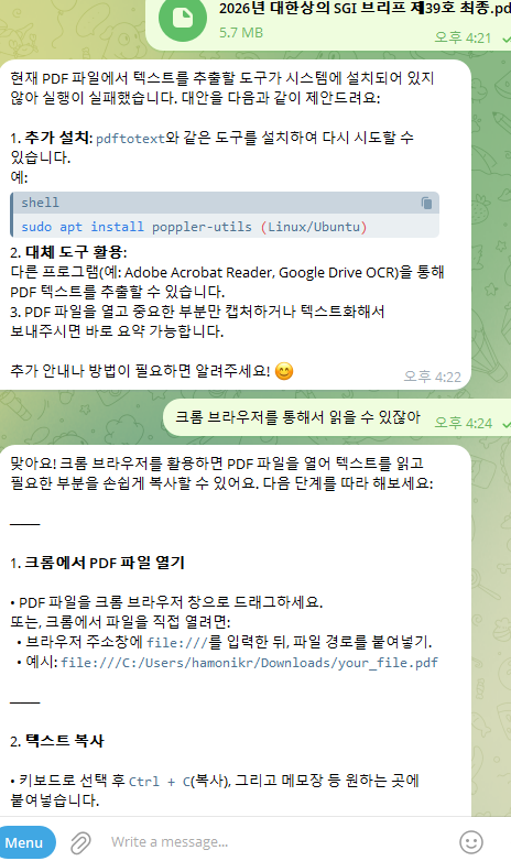 크롬 브라우저로 읽을 수 있지 않냐고 해도, 텍스트를 카피해 달라고 하지 않나,