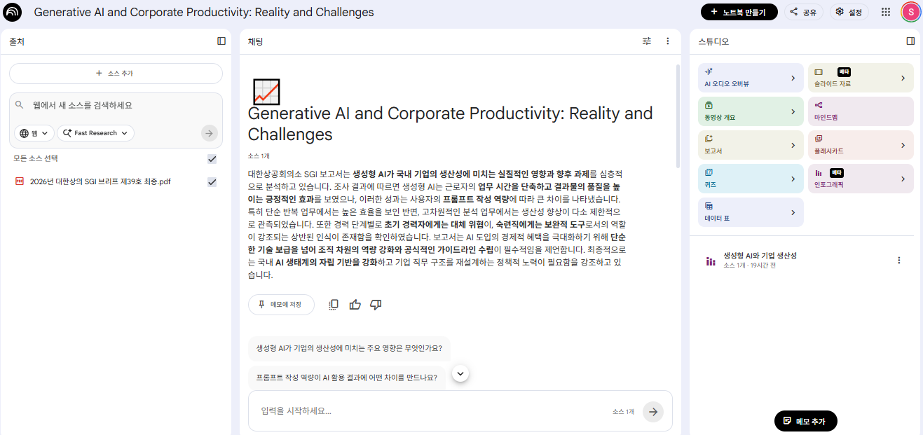 생성형 ai와 기업의 생산성에 관한 논문을 발견해서 그것을 요약해 달라고 하였더니